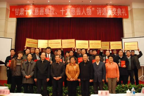 由甘肅省慈善總會和甘肅日報社聯(lián)合主辦、每日甘肅網(wǎng)獨家承辦的2010年甘肅省十大“慈善單位”、“慈善人物”頒獎典禮于2010年12月28日在蘭州舉行。經(jīng)過激烈角逐,甘肅國芳工貿(mào)集團股份有限公司榮幸地被評為“甘肅十大慈善單位”之一。