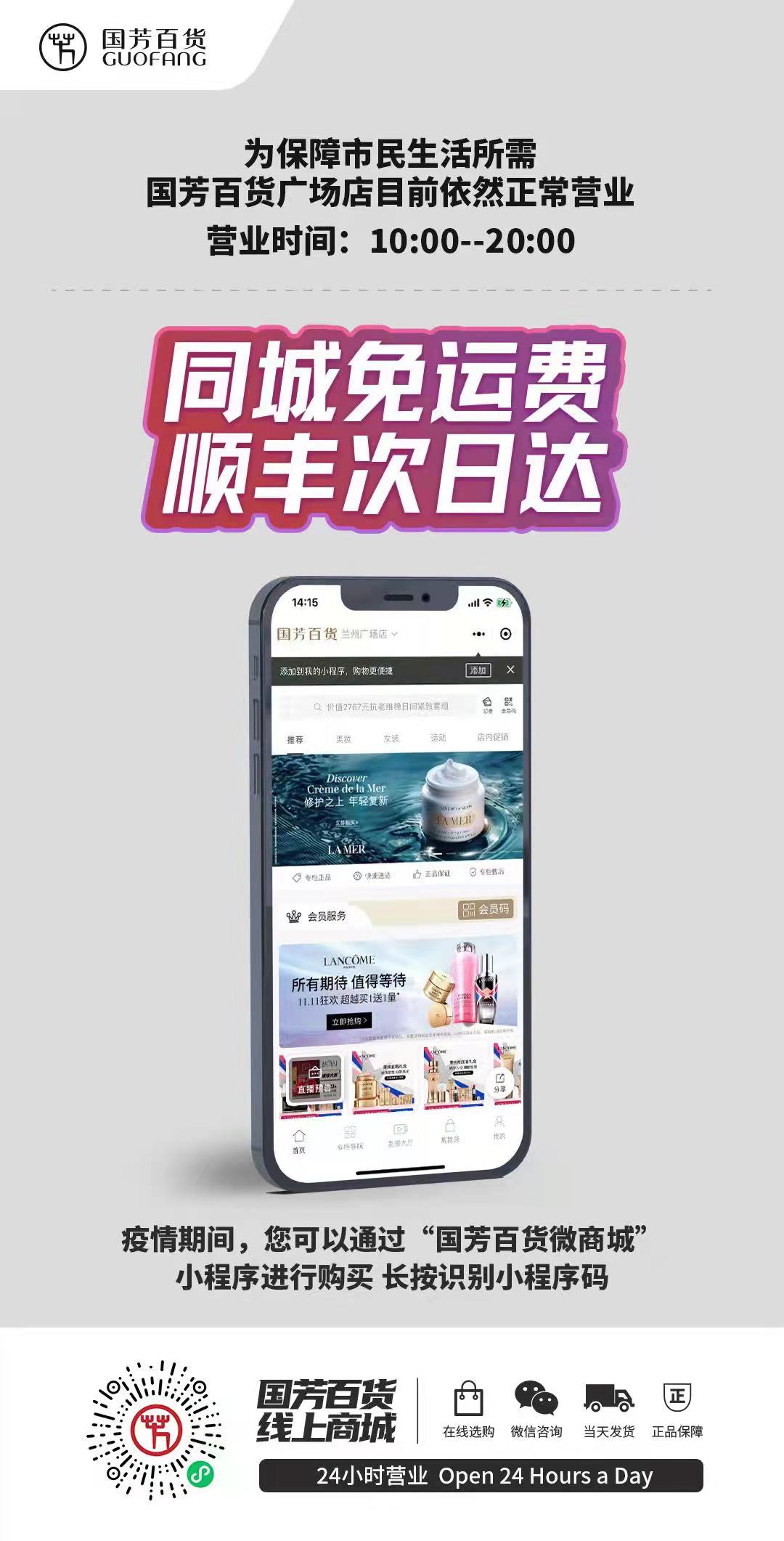 集團(tuán)公司旗下國(guó)芳百貨積極響應(yīng)政府部門號(hào)召,采取全員居家辦公形式,呼吁顧客免外出、免接觸,通過(guò)國(guó)芳線上商城進(jìn)行商品購(gòu)買,同時(shí)增加直播平臺(tái)推廣量,保證安全的基礎(chǔ)上滿足顧客居家購(gòu)物需求。國(guó)芳百貨全體員工努力在特殊的疫情環(huán)境下,為顧客解燃眉之急,想顧客之所想,急顧客之所急!