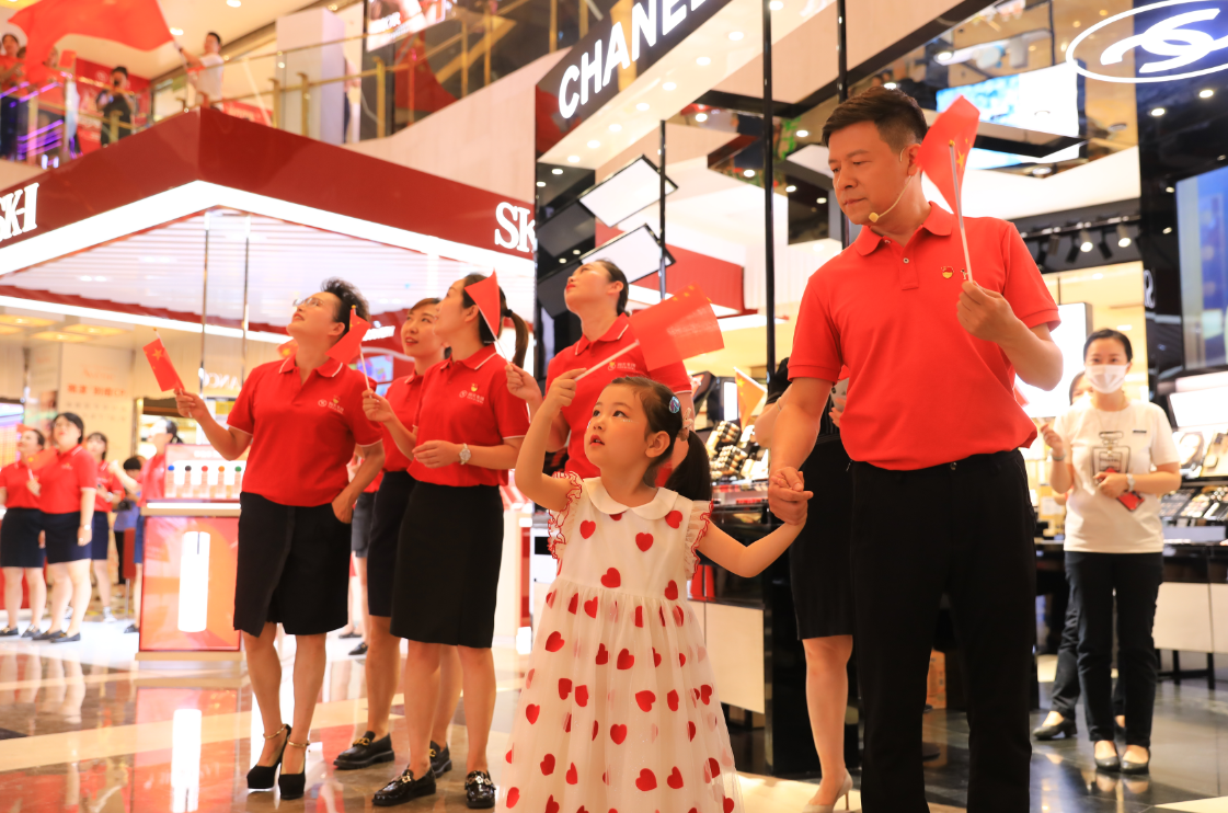 下午14時,國芳集團(tuán)慶祝中國共產(chǎn)黨成立100周年紅歌快閃活動在蘭州國芳百貨廣場店一樓中廳隆重舉行。國芳集團(tuán)全體黨員及員工代表參與其中,大家用歌聲表達(dá)對黨的無限忠誠和美好祝福。