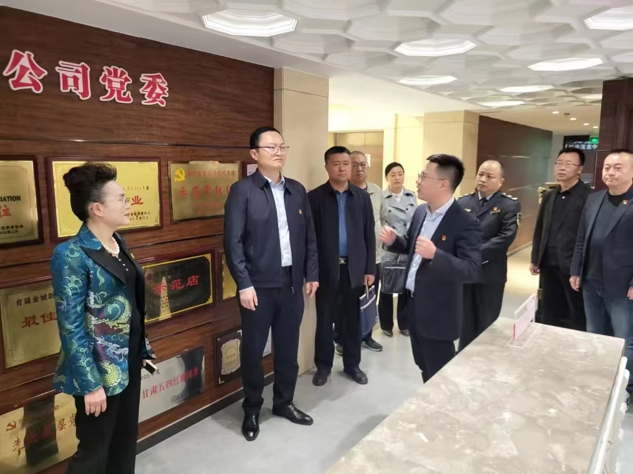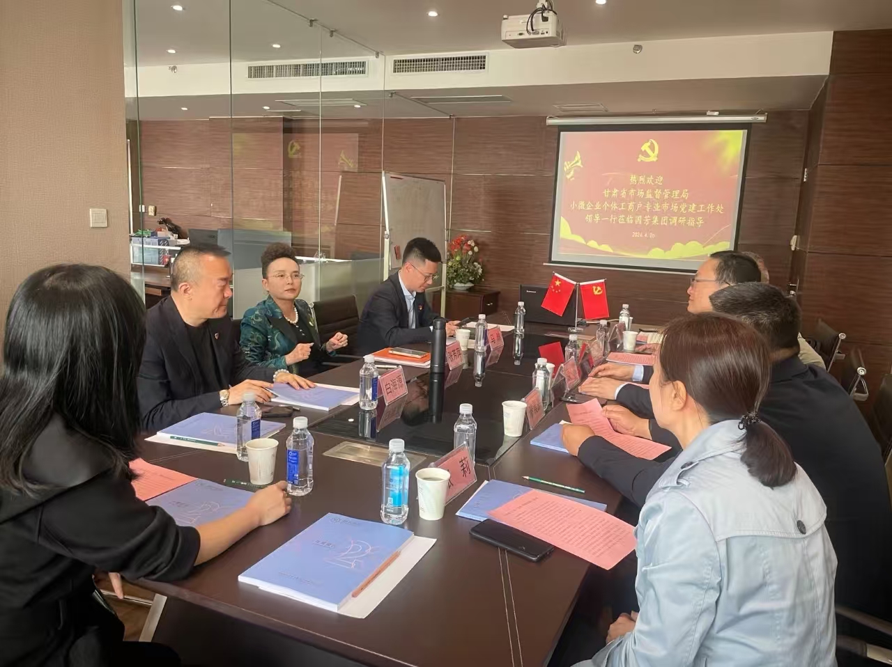 2024年4月26日,甘肅省市場(chǎng)監(jiān)督管理局小微企業(yè)個(gè)體工商戶專業(yè)市場(chǎng)黨建工作處侯巍處長(zhǎng)與省、市、區(qū)、街道四級(jí)市場(chǎng)監(jiān)管局非公有制經(jīng)濟(jì)黨建處室相關(guān)負(fù)責(zé)人一行蒞臨國(guó)芳集團(tuán)黨委進(jìn)行調(diào)研指導(dǎo)并座談交流。